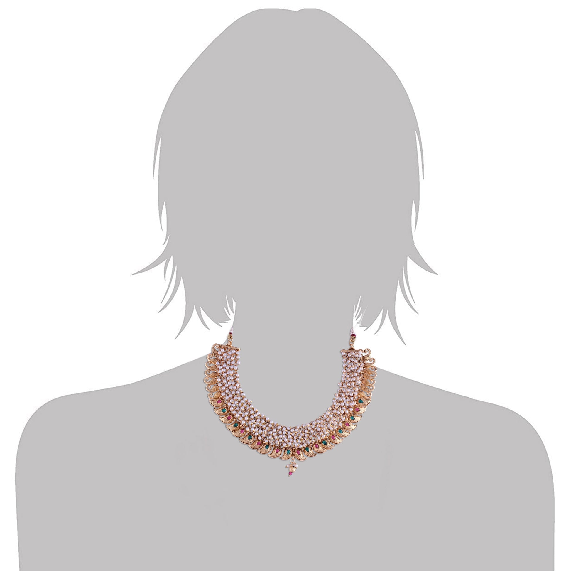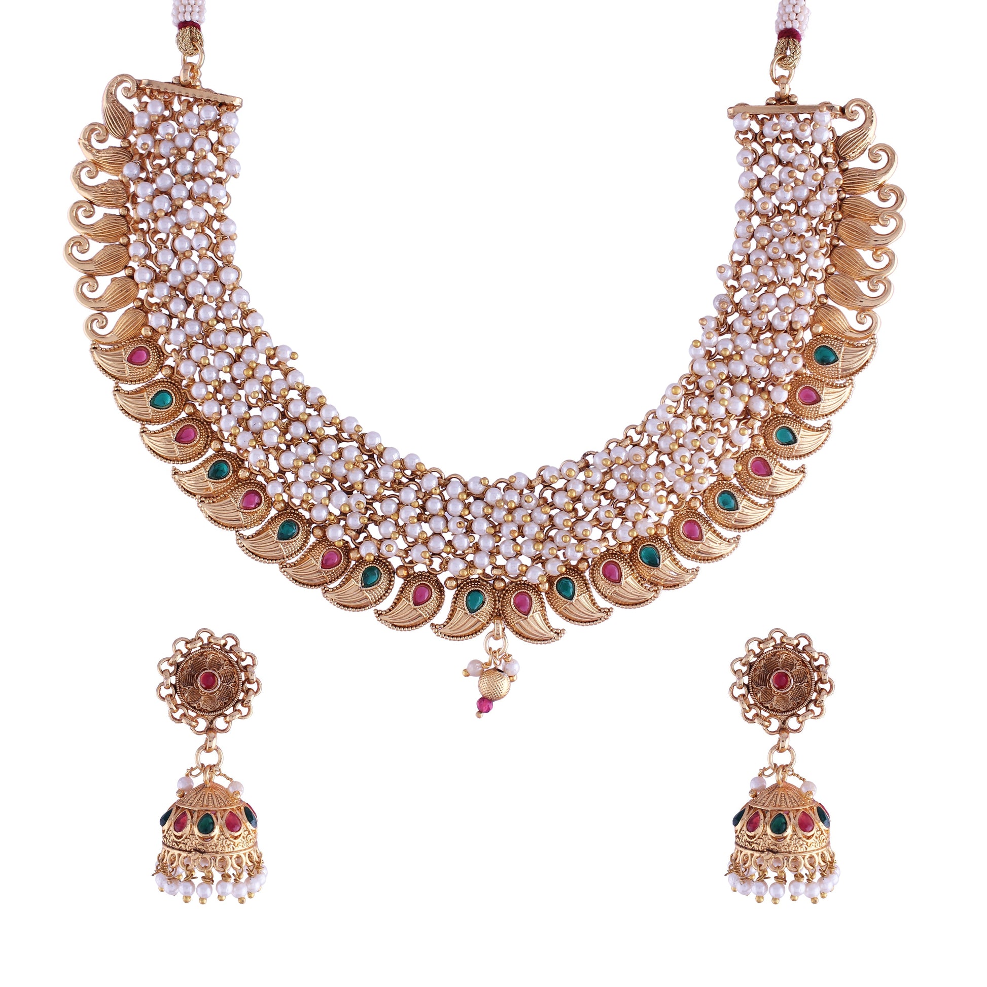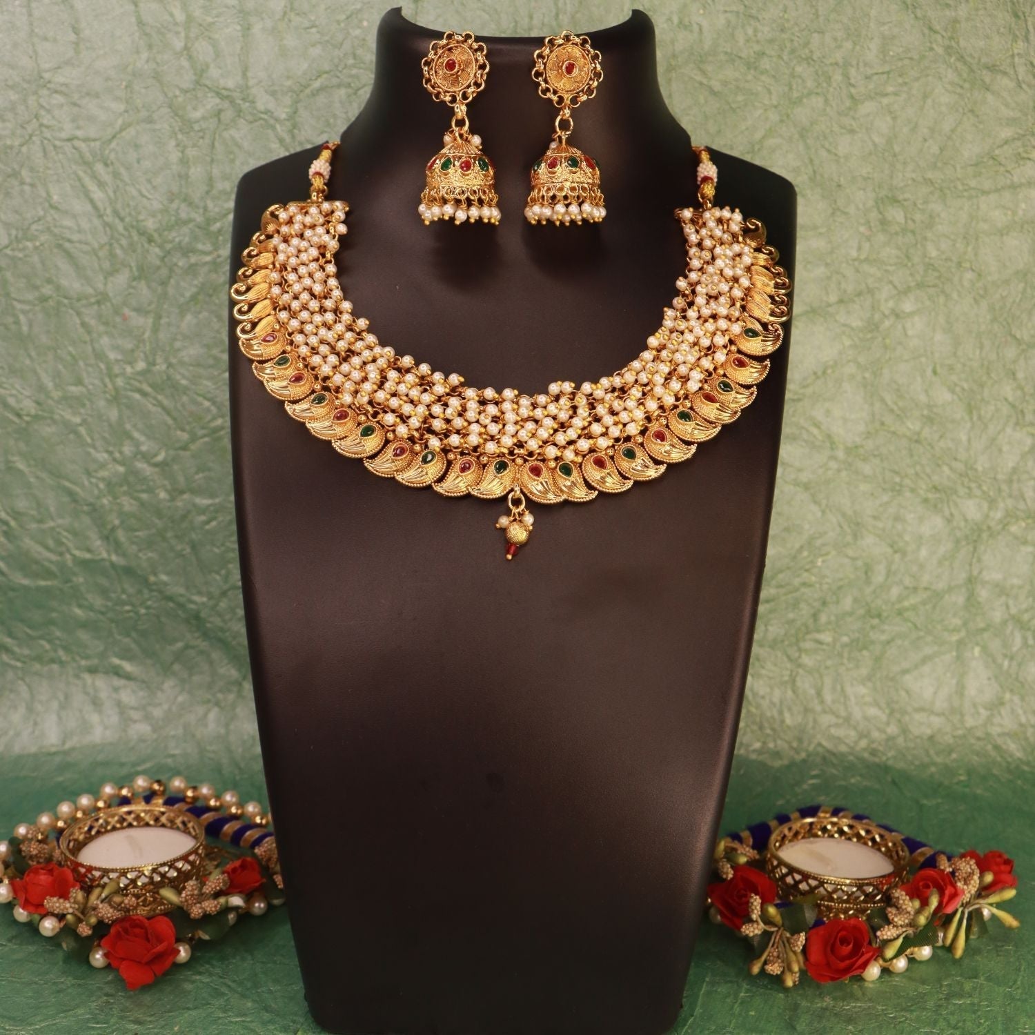 18K Gold Plated Brass Pearl Choker Necklace With Earrings for Women/Girls - Wahe Jewels