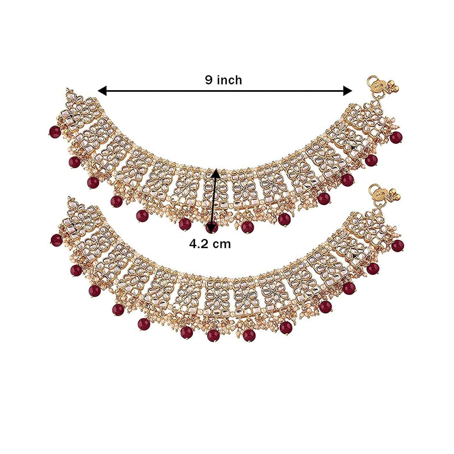 18k Gold Plated Bridal Kundan Pearl Anklets/Payal For Women - Wahe Jewels