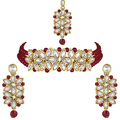18k Gold Plated Kundan & Pearl Beaded Choker Set for Women/Girls - Wahe Jewels